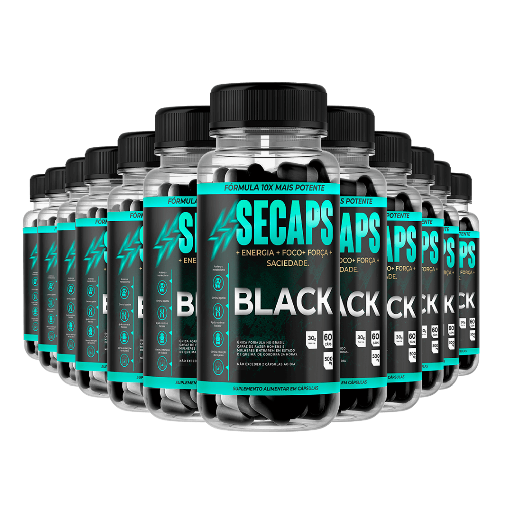 Secaps Black é um suplemento em cápsulas que oferece facilidade e praticidade na ingestão diária, pensado para atender as necessidades do público adulto que deseja acelerar o emagrecimento de forma natural e segura.